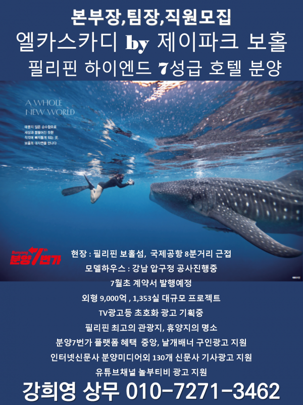 ♦️♦️7성급 호텔 엘카스카디 제이파크 보홀 직원모집♦️♦️